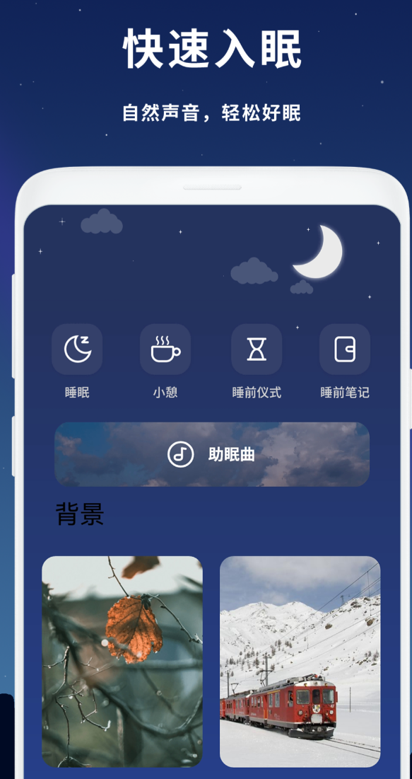 采用低刺激动态影像作为助眠媒介,画面采用去饱和色调与极简运镜节奏,配合渐进式环境音效,引导注意力从思维反刍中脱离。呼吸训练模块支持全天候使用,不仅限于睡前场景,可快速调节交感神经活跃度。睡眠起始判定以脑电等效的运动静止+呼吸平稳双指标为依据,避免将“卧床时间”误判为“实际入睡时间”,数据基准更贴近临床睡眠评估逻辑。