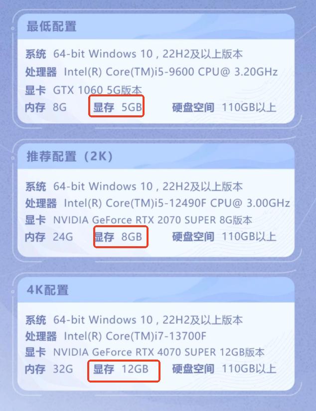 如需在4K分辨率下实现高帧率与全特效运行,则建议配备GeForce RTX 4070 Super(12GB显存)或更高规格显卡。对于现有设备显存未达标的用户,可通过降低渲染分辨率、关闭各向异性过滤、将材质质量设为“低”、禁用环境光遮蔽及——尤为关键的是彻底关闭光线追踪功能——来显著缓解显存压力,保障基础运行稳定性。