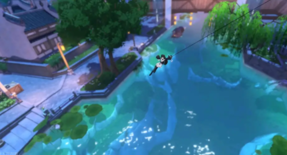 镜花洲区域不同于其他的区域,使用较为奇幻的场景设定,再进入到镜花洲之后玩家会仿佛置身于江南水乡,大量的水系和茂密的花丛相交错,让每个玩家都仿佛置身于温柔委婉的江南,场景里会有大量标志性的场馆建筑,同时区域内还会有大量的代表性角色,佩佩是餐馆的看板娘,精通功夫烹饪和算账,优秀的经营能力让角色成为了区域的小财神,寒悠悠也经常会在镜花洲区域活动,角色乐观自信擅长寻宝,会自行探索区域破解机关,收集场景里出现的宝藏。