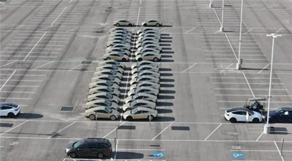 得州超级工厂的出厂停车场紧邻工厂出口,是成品车辆测试前的主要停放区。