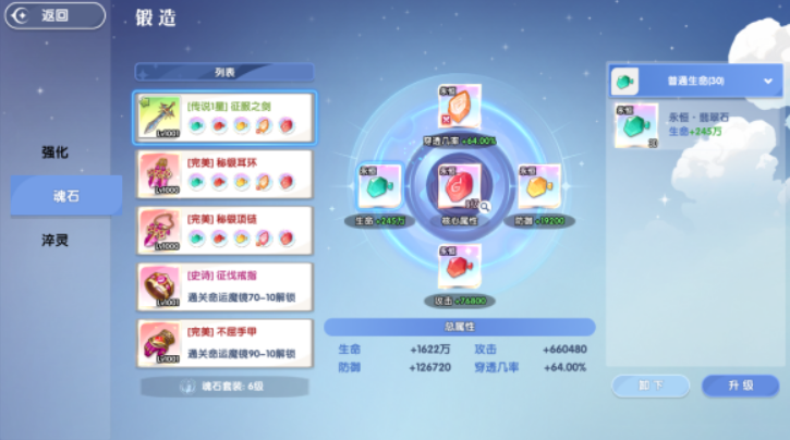 游戏里的魂石也会有对应的等级设定,等级越高,石头可以起到的作用也会越强,玩家可以直接在获得魂石之后,提升角色的各项能力,也可以把相同的石头合成,让石头能产生更强的属性,建议在游戏里多去训练几个角色,在挑战过程中有更多选择的同时,也可以根据实际的需求挑选对应角色上场,另外通过各种背饰和外观也能提升角色能力,玩家可以根据自身需求合理选择,坐骑时装只要获得就能解锁属性,不喜欢穿戴的玩家也不用担心。