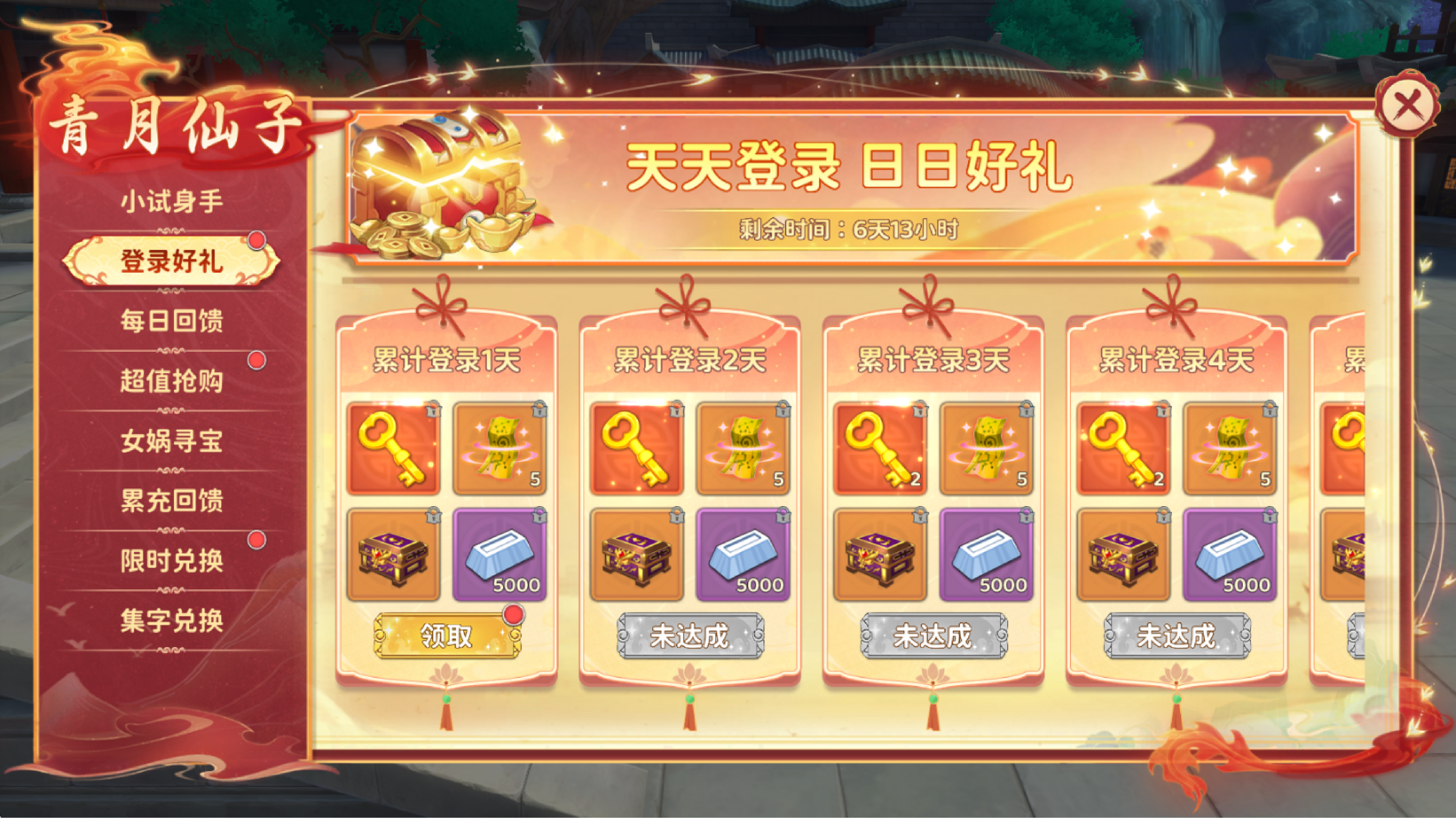 每天充值元宝,专属礼包准时送达,惊喜不中断!