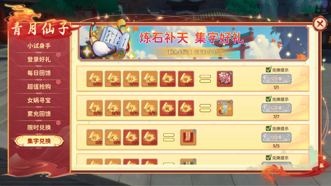 活动期间,收集“炼石补天救世”六个字,数量越多,奖励越豪华!