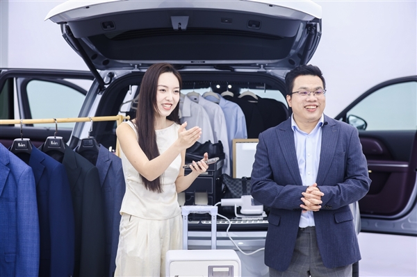 作为大五座SUV,岚图泰山X8的超大空间能秒变超大衣帽间。通过专属挂衣杆、魔术挂钩等,后备厢被划分为上衣区、下装区与配饰区,形成分层分区、井然有序的收纳空间。直播中,主播从大衣到配饰的取用流畅无阻,迅速且持续地完成换装动作。