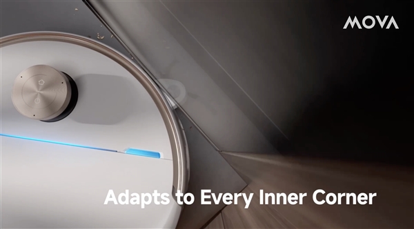 MOVA通过16cm极致外扩超级机械臂,将清洁逻辑从机身进入空间转变为结构主动延伸进入。这意味着,即使整机尺寸受限,清洁单元依然能够突破物理障碍,触达以往扫地机无法触及的深层空间。