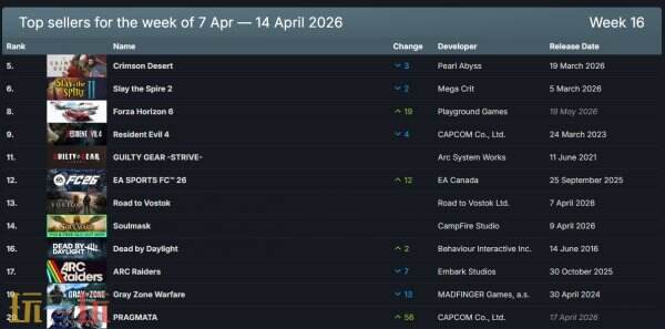 4月7日至14日的最新Steam游戏销量周榜揭晓(本次统计不含免费游戏)。本周,《红色沙漠》延续强势表现,力压《杀戮尖塔2》实现四连冠,持续领跑销量榜。