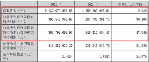 就在这个背景下,小熊电器(002959.SZ)实现业绩双增:2025年营收52.30亿元,同比增长9.92%;归母净利润3.93亿元,同比增长36.40%。