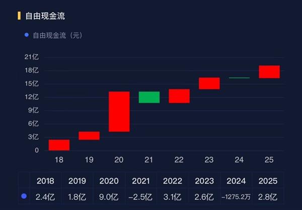 更重要的是,小熊电器赚到的不是账面数字,是实实在在的现金。2025年,经营活动产生的现金流量净额达到4.16亿元,同比增长81.64%。公司上市以来经营净现金流持续为正,自由现金流以流入为主,现金流充裕是常态。
