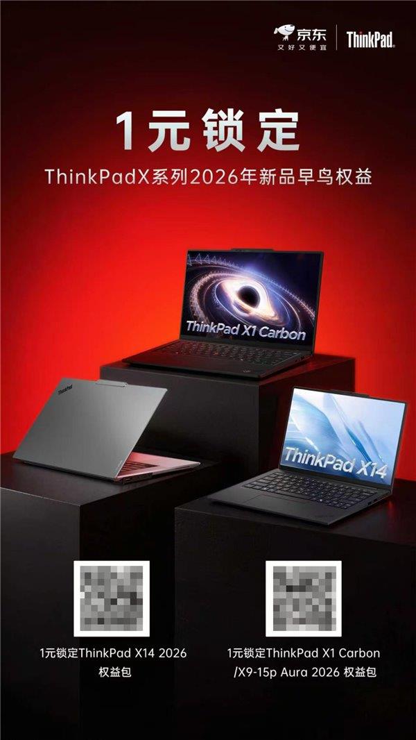 4月15日,京东正式开启ThinkPadX系列2026年新品预约。即日起至4月22日,消费者只需花费1元即可锁定早鸟权益包,购买ThinkPad X14 2026款,可获赠ThinkPad X系列纪念徽章冰箱贴,并享受2年意外保护延保服务;购买ThinkPad X1 Carbon或X9-15p Aura 2026款,可享1年意外保护延保服务,消费者可以第一时间通过京东抢先入手。