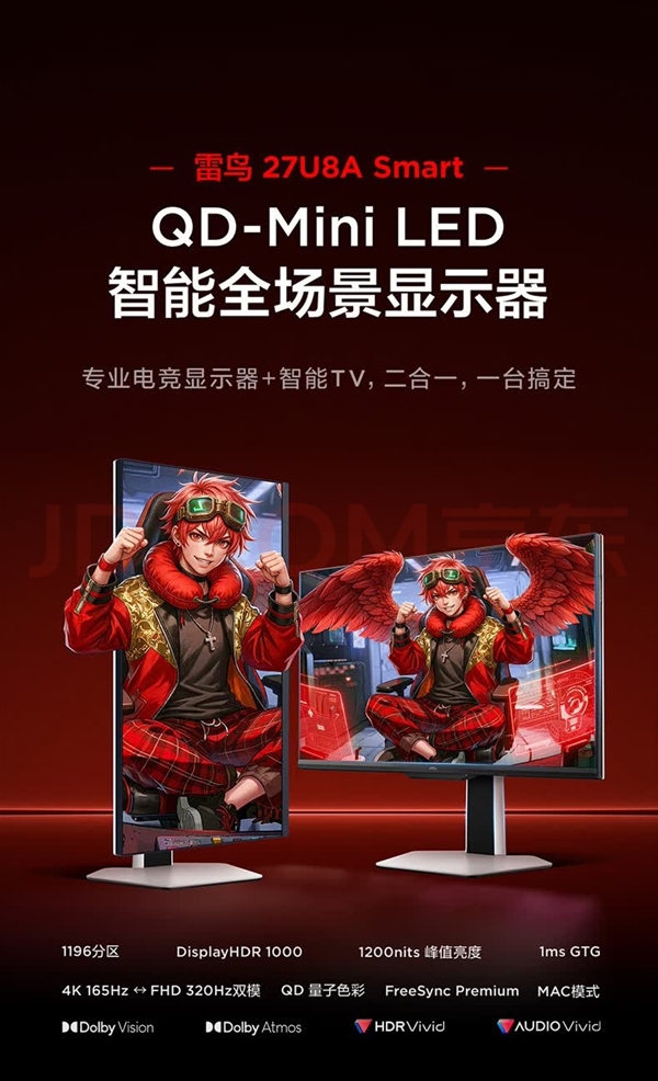 2499起!雷鸟U8A Smart2731.5显示器预售:4K165Hz+智能TV