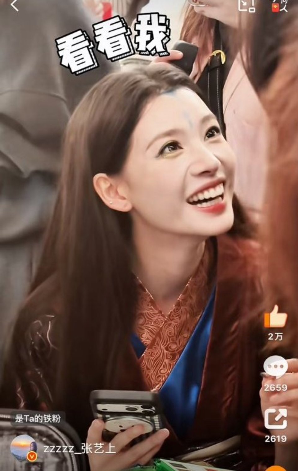 在同步发布的视频中,张艺上身穿一袭红袍,搭配《黑神话:悟空》中亢金星君标志性的眼妆造型,高度还原了游戏角色的神韵。她还不时对着镜头做出俏皮可爱的表情,展现了角色之外活泼的一面。