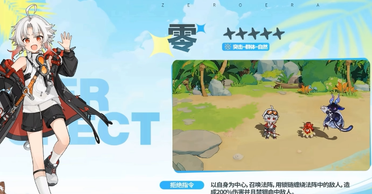大招“拒绝指令”则转向范围控制维度:以零为中心展开法阵,阵内生成锁链缠绕所有敌方单位,造成200%攻击力的群体伤害,并附加禁锢效果。该控制具有明确的战术窗口——需在敌人被有效牵制或已触发连击后释放,方可最大化控场收益,为队友创造集火或调整站位的空间。