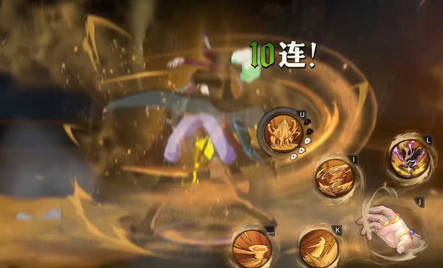 强化形态下普攻重构为四段:第一段变为双推掌,长按增强突进距离;第二段攻击范围扩大并附带爆炸击飞,落地后残留沙坑地形;第三段跃击实现元素化穿透,钩子判定保留全向抓取能力;第四段释放追踪型“元素化月牙斩”,自动索敌并提升命中率。