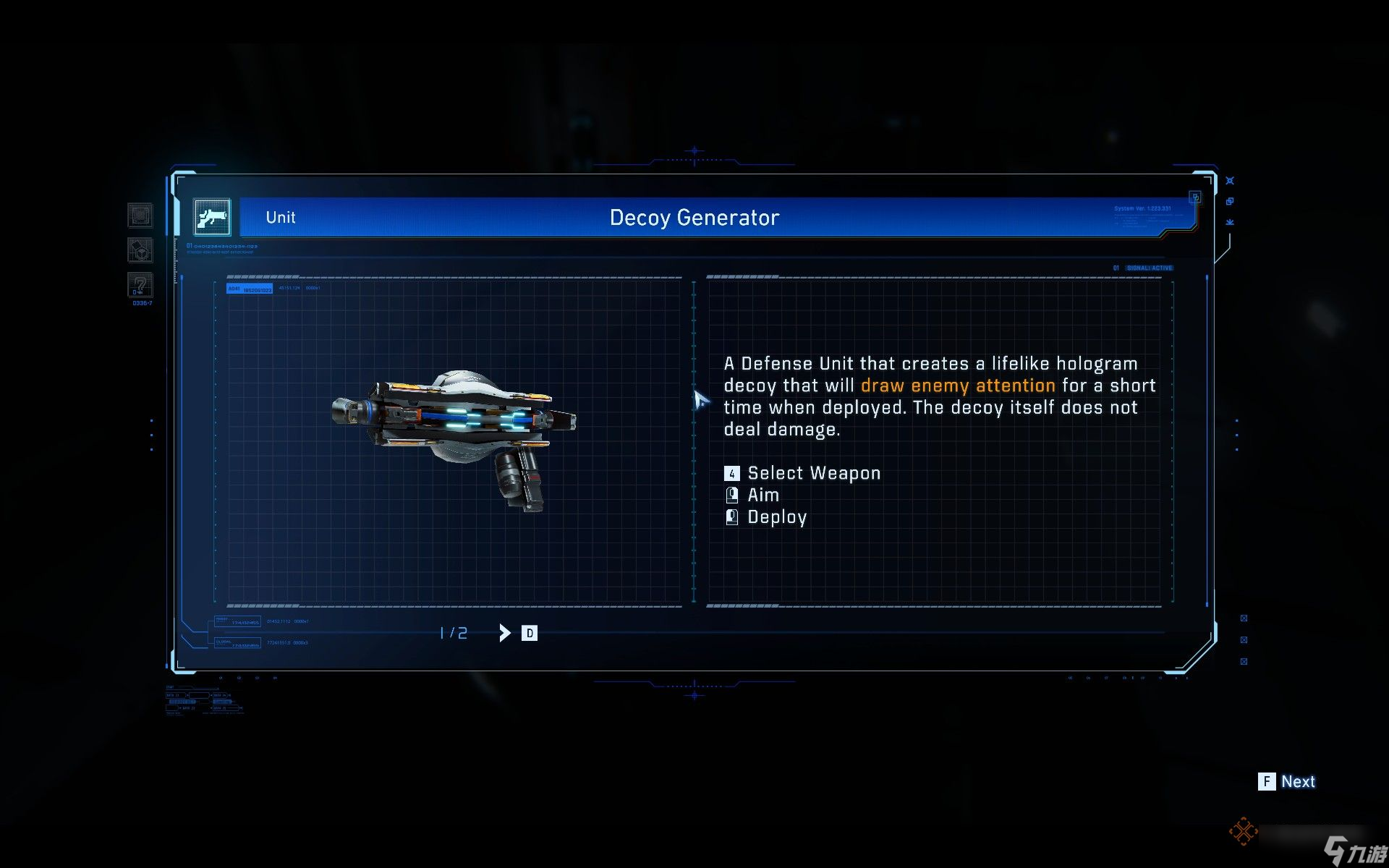 载入界面的下一部分是模组(Mods),它们为休提供各种属性加成。模组分为攻击、黑客、防御和支援四种类型。游戏中有数十种模组,请多加尝试,寻找最适合你的组合。