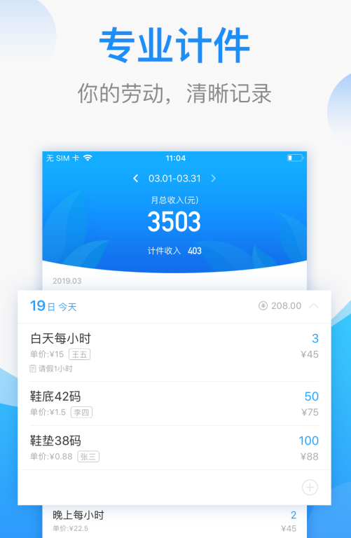 安心计件是为多劳多得、按件计薪的人群量身打造的实用工具,它能精准记录每一次完成的工作量与对应报酬,不用反复核对也不会出现漏记错记的情况,让辛苦付出的每一份成果都清晰可查,从而在忙碌工作中轻松掌握收益动态,更好地规划生活与工作节奏。