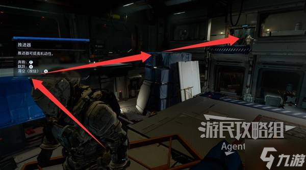 序幕练习基本操作,学会推进器跳跃后,跟随队友跳到楼上触发剧情。
