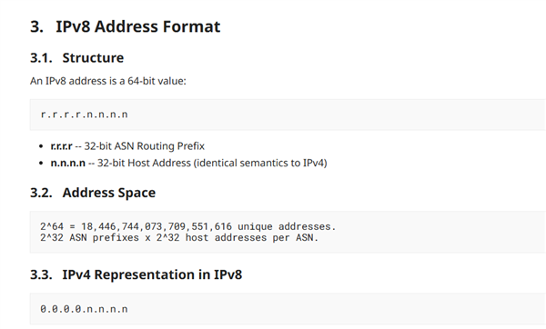 草案明确,IPv4是IPv8的一个真子集。