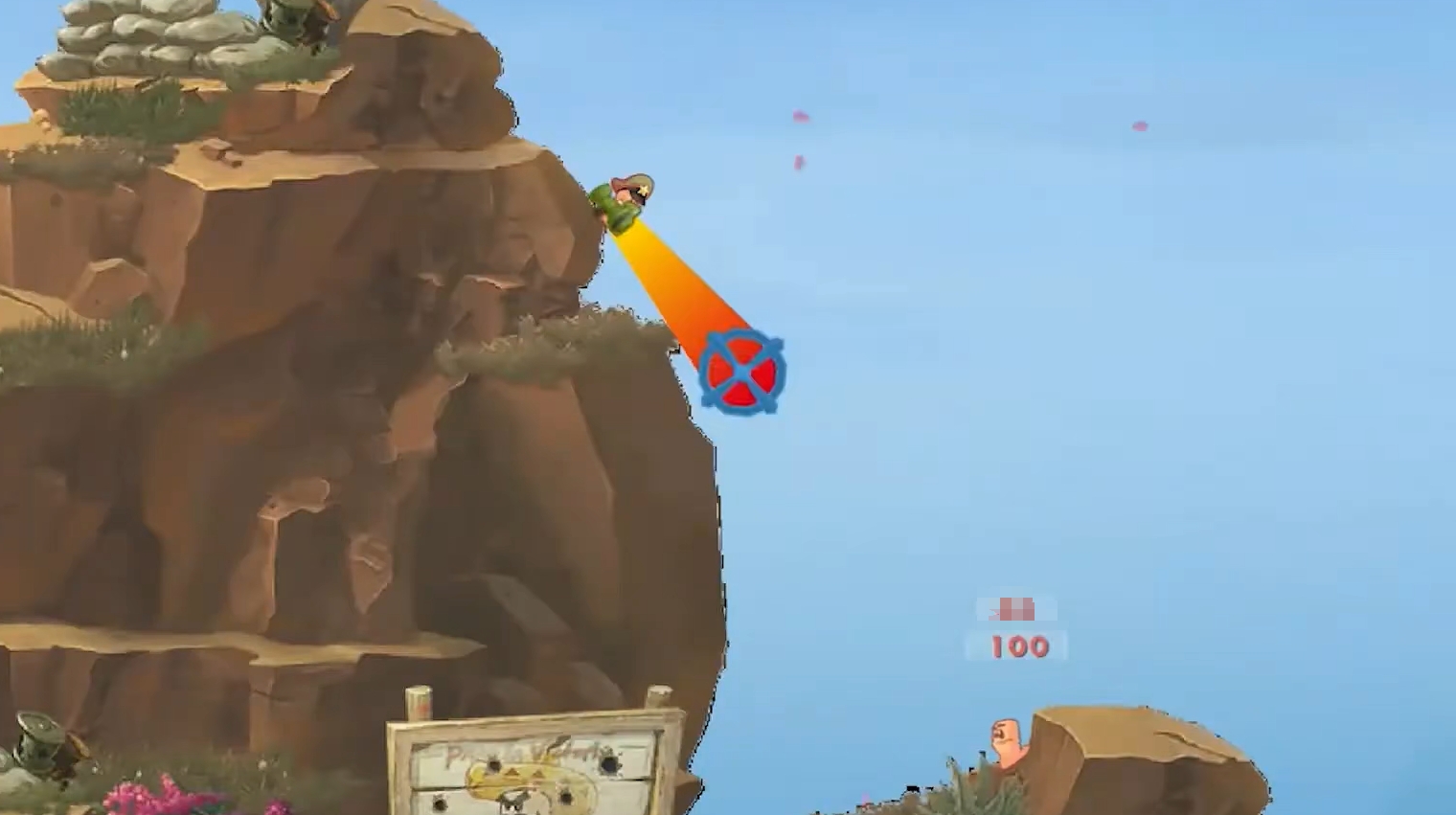 要注意,每条虫子都有相同的固定血量,一旦被攻击或是从高处掉落,都会损失血量,并且只要血量变为零便会被视为战败,因此玩家不光要考虑如何去战胜对手的问题,还要利用好地图里的地形,令敌方没那么容易就能攻击到自己,保全自己的血量。当然了,除了用直接情空敌人血量的方式来赢下对手外,玩家们也可剑走偏锋,通过将敌人击出可站立区域的方式令他们直接死亡。这一方式在实战里极为使用,而且实现此方式的手段也格外多,玩家既可利用爆炸的余波将敌人震飞出可站立区域,也能将敌人脚下的可站立区域挖穿,让他直接掉下去。不管哪种手段,只要能让敌人无法在可站立区立足,便都是可利用的好方法,玩家也可大开脑洞,在实战中自行去进行尝试。