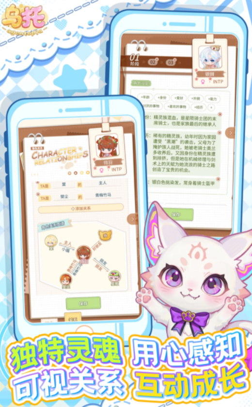乌托手游不同于常规的游戏,里面不再是已经设定好的形象,玩家可以根据自己的需求设定专属的角色,角色的五官造型包括穿搭都能随意设置,成员可以在虚拟的专属世界,看角色共同成长,为了能让玩家更有代入感,游戏里会设置AI对话引擎,每个设定出来的虚拟角色都会拥有专属的行为逻辑,在玩家不和角色互动的时候,他们会在游戏里自行看书,吃饭,他在和玩家对话的过程中,可以根据玩家的情绪做出回应,仿佛就是现实生活中的朋友。