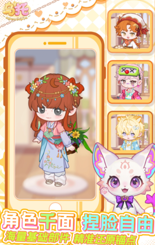 乌托主打角色定制和家园装扮玩法,但关于游戏的上线时间,官方还没有公开,建议喜欢这类手游的成员,先去豌豆荚完成游戏的预约和下载,为了能让玩家更有代入感,游戏支持自定义角色设定,每个成员都可以自由选择自己喜欢的角色,性别,天赋,关于性格和各类复杂的数值也支持自定义调整,打造完独特的虚拟灵魂之后,就可以挑选对应的外观形象和角色服装,让角色能以卡通形象展现出来,大量的服装饰品,支持玩家自由搭配,完成捏脸之后就可以进入到卡通场景中,开启沉浸式的家园装扮和小镇建造。