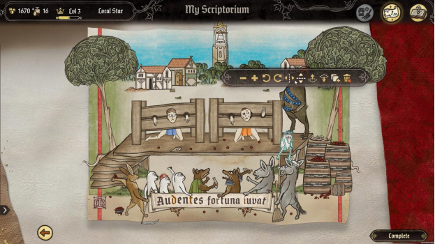 ● 利用海量的可拖放素材库(所有素材均取材于真实的中世纪手稿和页边批注),并加入彩绘首字母、装饰图案、边框和其它精巧怪奇的细节为画布锦上添花。