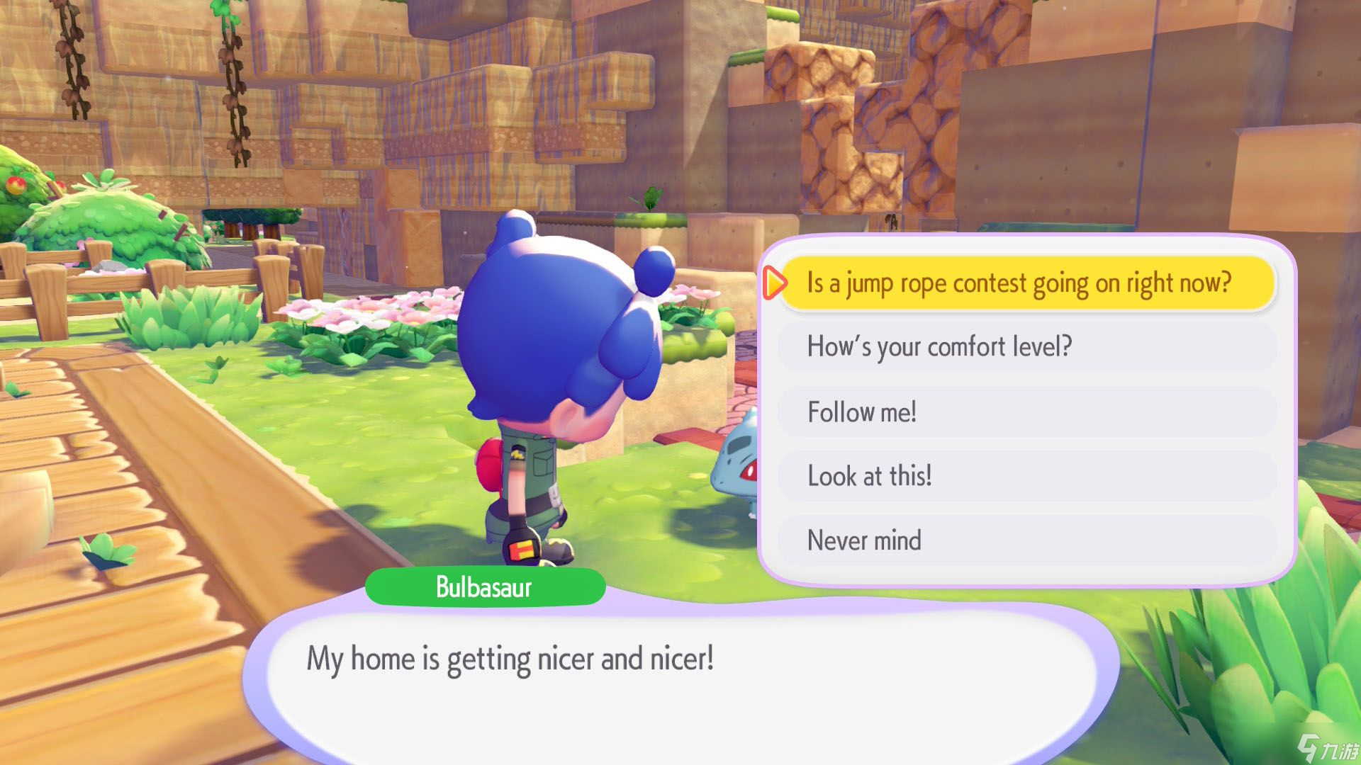 当你与妙蛙种子交谈时,它会告诉你关于跳绳比赛的规则。你将根据成功跳跃的次数获得奖励,你也可以和朋友一起玩,组队参加活动不会影响奖励。