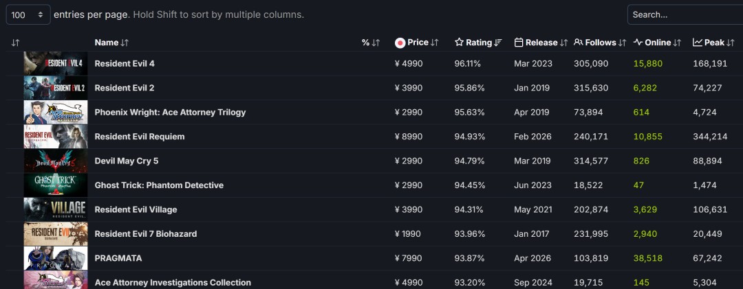 《识质存在》当前在SteamDB上,好评率为93.87%,仅略逊于 Capcom今年2月底推出的另一款热门游戏《生化危机9:安魂曲》(好评率94.93%),以及Capcom当前评分最高的游戏《生化危机4:重制版》(好评率为96.11%)。