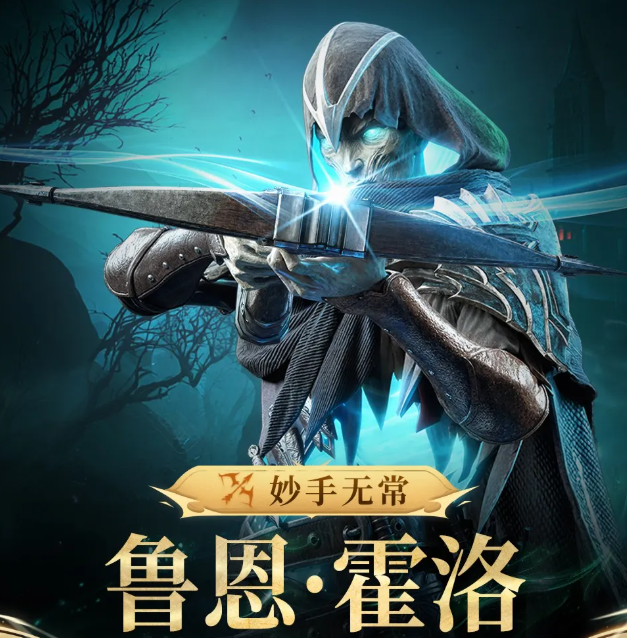 鲁恩霍洛登场即进入隐身状态,这是其核心生存与先手优势。当队伍中其他射手英雄释放终结技时,他将自动对目标普攻范围内一名敌人发动“盗贼暗箭”,每3秒最多触发一次;该效果可使目标防御力下降,并额外对目标及其周围至多4名敌人造成360%攻击力的范围伤害。