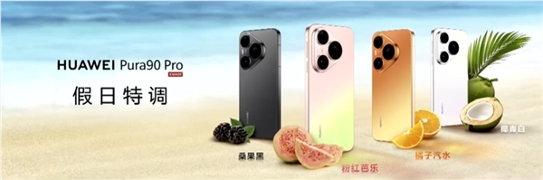 Pura 90 Pro则是四款配色,分别是粉红芭乐、橘子汽水、椰青白、桑果黑。