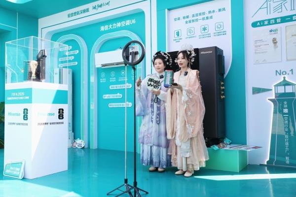 除了精彩纷呈的互动体验,现场还展出多款2026美加墨世界杯定制空调产品。其中,海信大力神空调U6自发布以来,便以“超大新风 神机妙算”的核心体验,成为高端家庭焕新空调的首选。作为全球首款搭载星闪人感2.0技术的新风空调,海信大力神空调能实时捕捉人体具体方位与活动轨迹,实现风随人动、风避人吹、人近柔风、无人节能等智能送风,将健康舒适的空气体验推向全新高度。而现场展出的海信空调智慧风A6系列则配备御风盾340°全面控风系统,900m³/h澎湃大风量让全屋没温差,一键AI智省电最高省电41%,实现“星闪人感智慧风 风量又大又聪明”的送风体验。