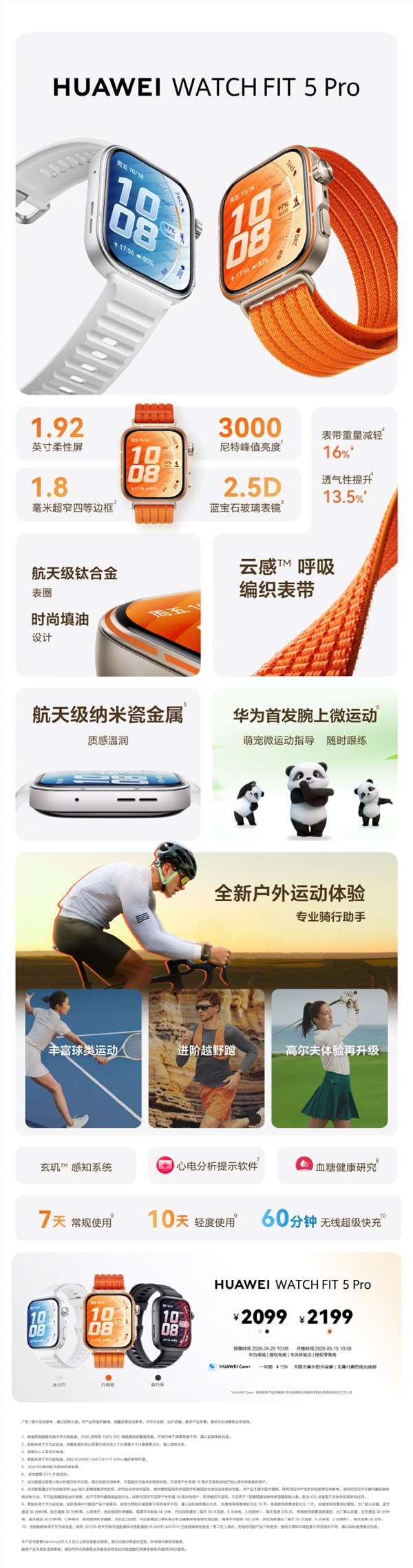 2099元华为最强小方表!Watch FIT 5 Pro发布 蓝宝石+钛合金