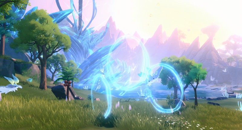 在蓝色星原旅谣构建的开放世界中,玩家可以自由探索一片广袤的星原。游戏场景以蓝紫色调为主,充满了奇幻色彩,玩家可以穿越麦浪丘陵,在星穹之下感受独特的环境氛围。游戏的核心玩法之一是“奇波”星宠系统,测试版本中已经实装了超过180种功能各异的奇波,它们不仅是战斗和采集的伙伴,还能作为坐骑,并通过“星结”机制与玩家深度绑定。