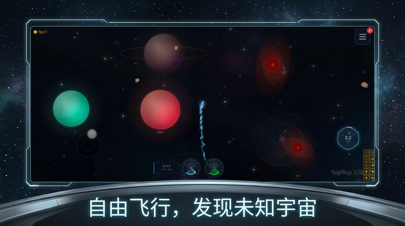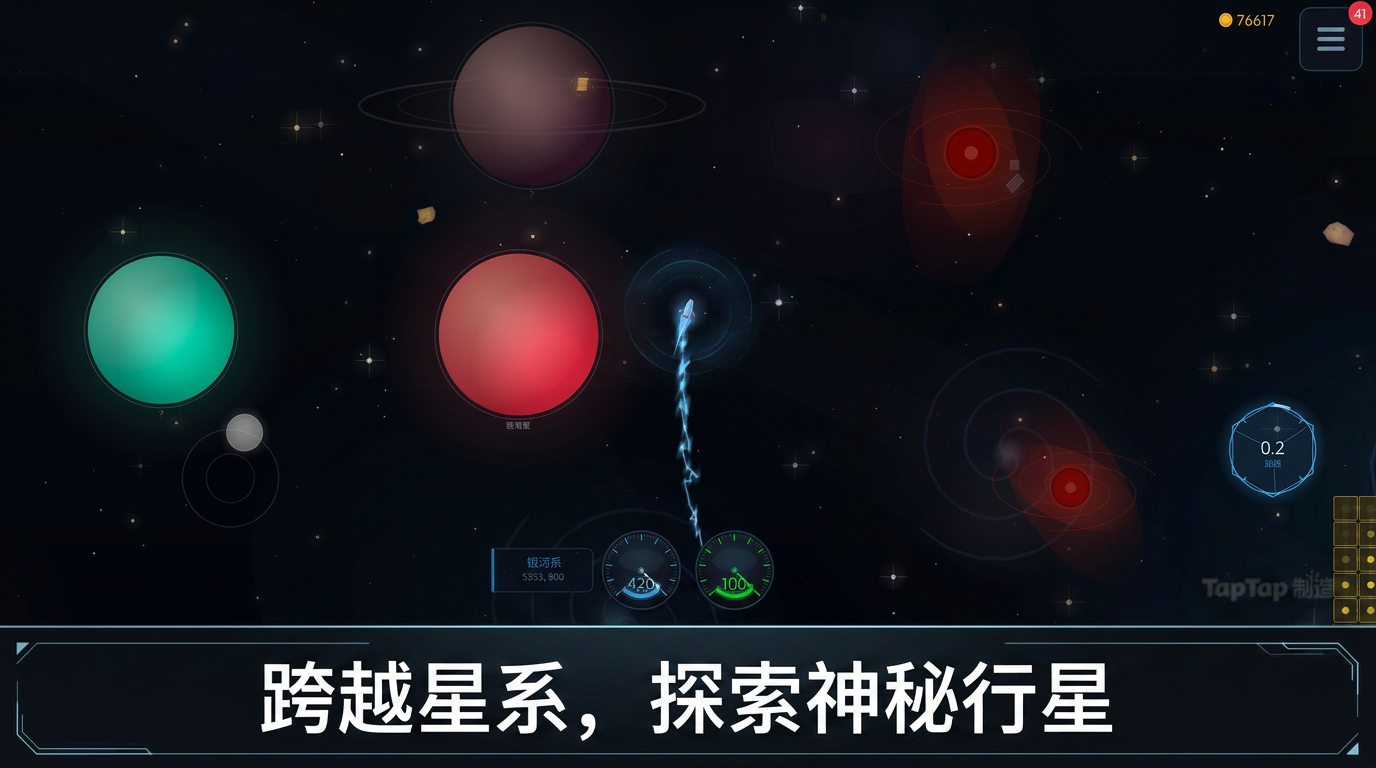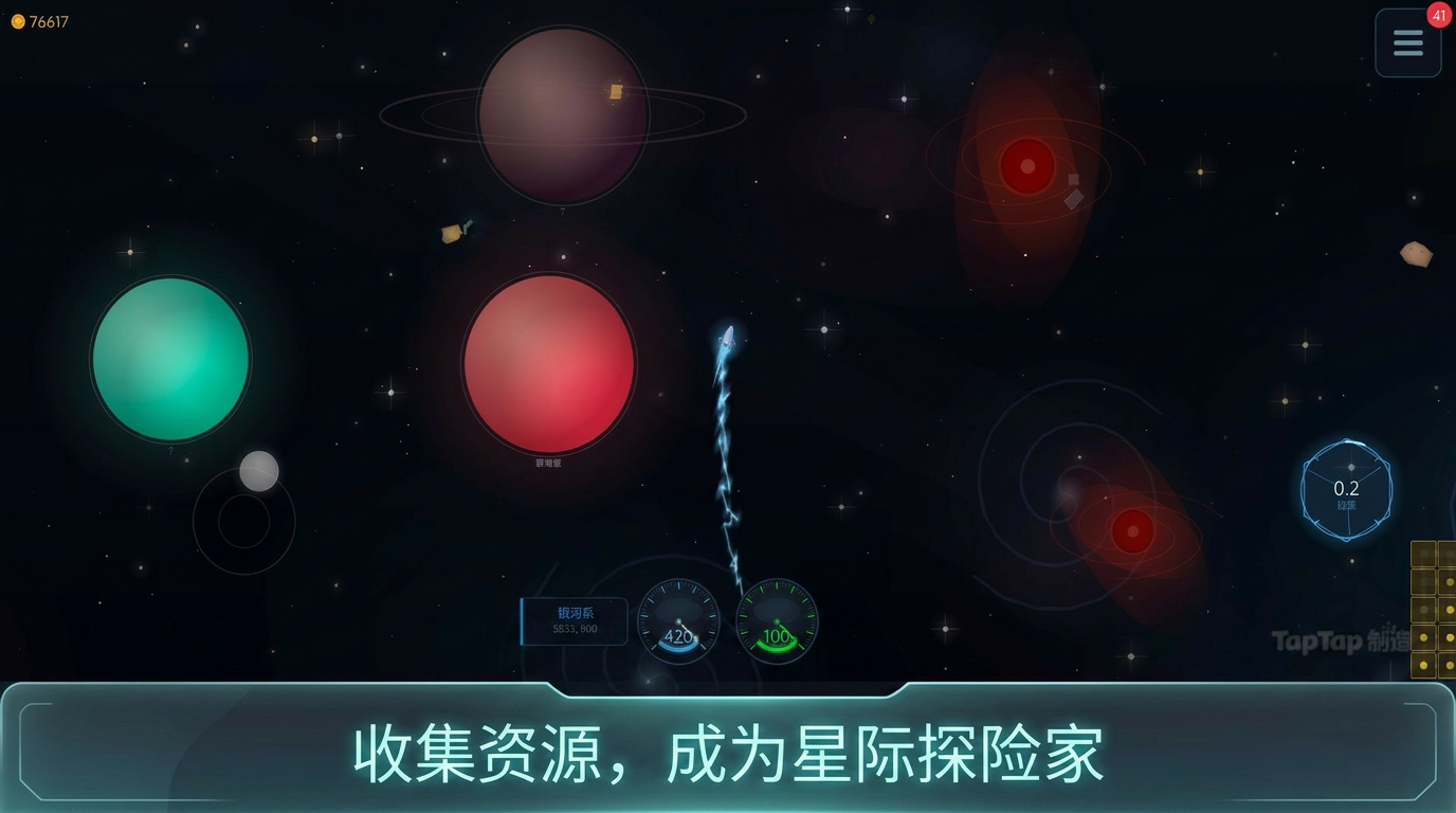 驾驶飞船在浩瀚宇宙中自由探索,发现星球、星云和星座,收集太空资源,与敌人战斗,穿越黑洞前往危险星河,寻找隐藏的网络热梗彩蛋。多种飞船自由切换,打造你的星际冒险之旅!