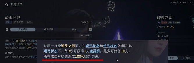渡灵之箭是伽罗的核心输出技能,释放后进入长弓状态,每一次在射击之前都会消耗在连续射击之后,射击的速度还会进一步的提升。在暴击之后还会额外的射出箭,然后补充伤害,是远程持续输出的主要手段。静默之箭冷却时间20秒,射出箭矢之后,就可以造成成吨的伤害,还可以及时的击退敌人,击飞敌人。在释放之后还能够将下一次的普攻强化成瞬间连射,在实战的过程中就会拥有全面的作用。