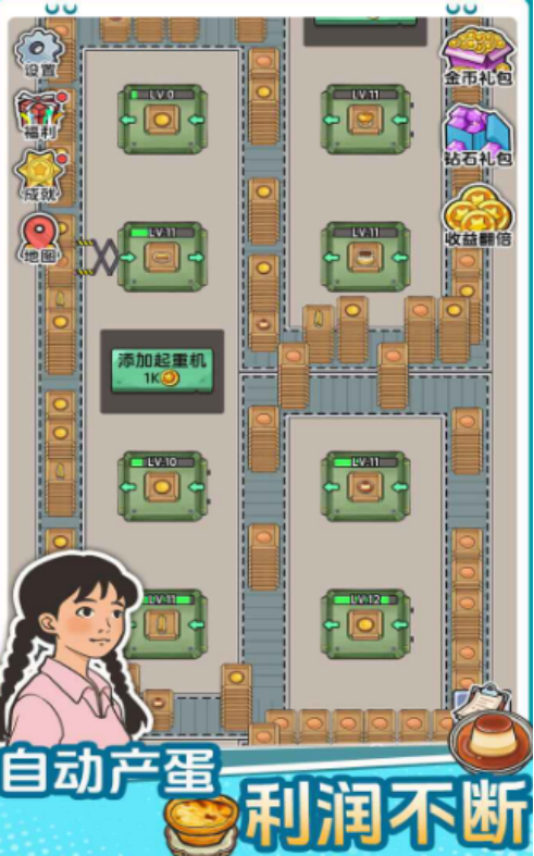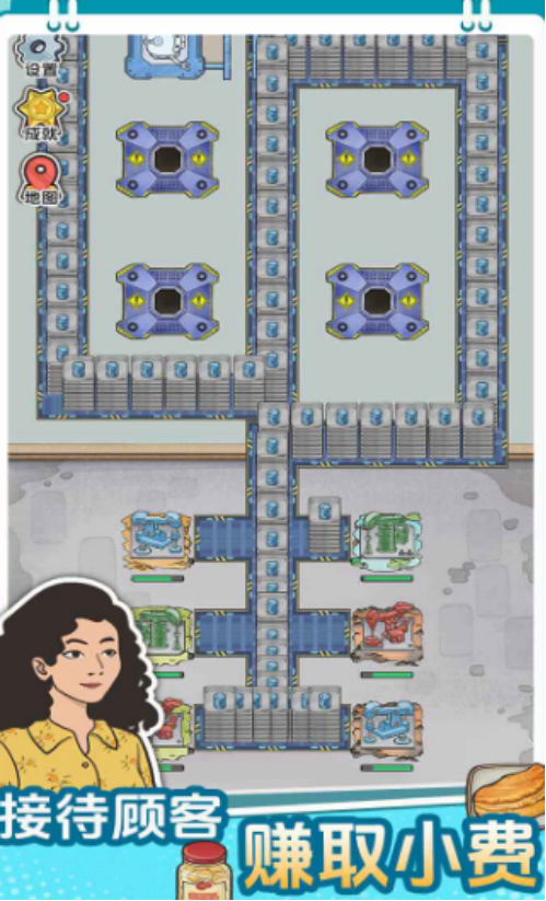 随着时间推移,所以玩家通过升级,又或者是蛋品包装以及谷物分裂的方式来打造出熟食产线,最终将原料变化成为金币。游戏拥有较为简单的玩法,小伙伴们在探索的过程当中,一定要注意,千万不要让设备堵车,一旦出现道路拥堵的情况,那么就会导致流水线不会工作,最终导致个人的生产效率下降,无法获得更多的经济效益。