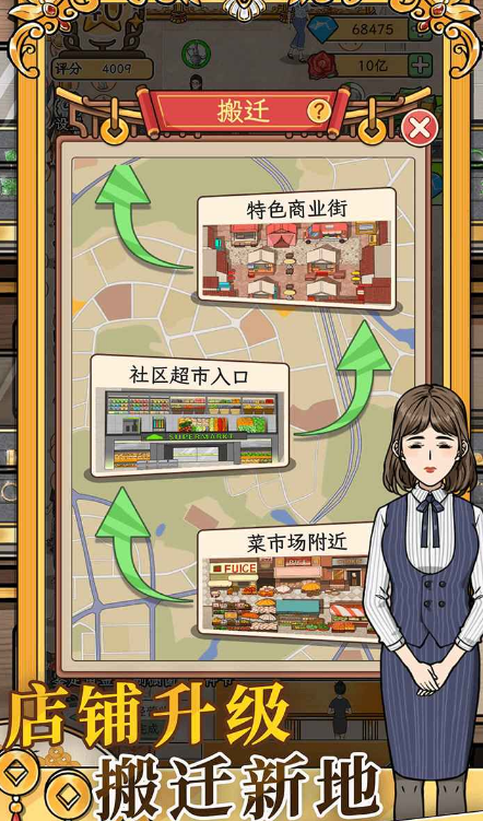 将众多模式完美相结合,又加入了超级舒缓的节奏,比较适合小伙伴们利用碎片化时间游玩,玩家可以在放置的模式下进行经营,另外还有建造收集等多种特色玩法,在你的不断经营之下,自己的店铺会变得更加火爆,然后也能够获得更高的收益,逐渐扩张店面是非常关键的,从最初的小店面逐渐打造成为全球的连锁店,甚至也可以将自己的经验开设到海外。