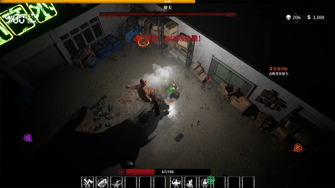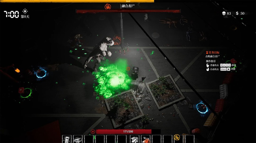 《99天生存指南》采用顶视角俯瞰式玩法,支持最多四人线上合作,核心为Roguelite生存挑战。游戏内置30多种天赋、10多种武器、10个终极技能与8张动态地图,融入日夜循环与尸潮变化系统。
