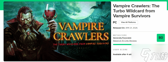 《吸血鬼幸存者》开发商Poncle的新作《Vampire Crawlers: The Turbo Wildcard from Vampire Survivors》(暂译:吸血鬼爬行者)媒体评价解禁,M站目前均分80分。