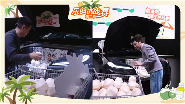 第二局则比赛用前备舱摆椰子,乐道L90拥有240L的超大前备舱,最终李斌率先将90个椰子摆满,并成功关闭舱门。
