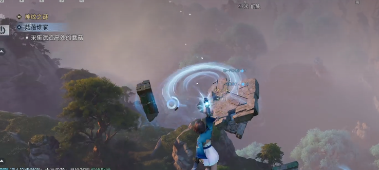 推进至该主线节点后,系统提示需采集“遗迹高处的蘑菇”。初见场景令人愕然:目标位于近乎垂直的陡崖顶端,岩壁光滑无阶,视野内不见任何攀附支点。反复尝试常规跳跃与移动均告失败,此时需意识到——此关卡并非考验操作极限,而是引导玩家建立环境观察意识。