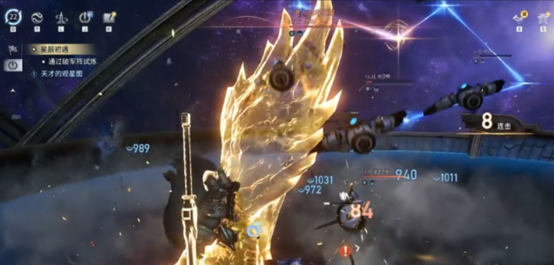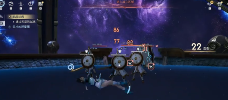 天地星象阵分为三个部分,第一环为破军阵,是整个副本中相对容易的一环。在这里,玩家不再会因为技能释放的先后而纠结,也不再会为了躲避敌人而刻意地避开。只要一直输出,不管是近战的普攻还是远程技能,都能很快地把敌人杀掉。本阶段设计的目的就是使玩家熟悉副本的节奏,为后面挑战做准备。因此即使是第一次接触游戏的玩家,在短时间内也能轻易地破阵,不会感到太大的压力。