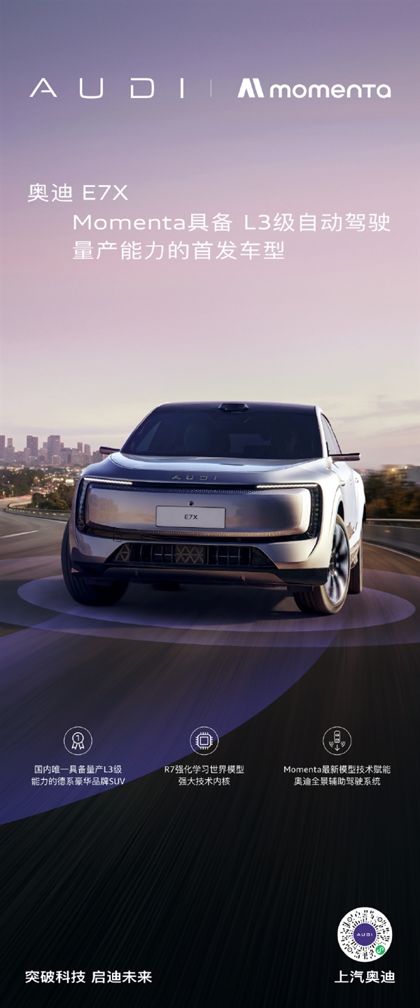 本届北京车展,上汽奥迪展台将完整展出奥迪E7X全套内饰与整车实车,官方也发出邀约 “别只听说,试过再说”,邀请消费者亲临现场沉浸式体验全新智慧客厅座舱的越级实力。