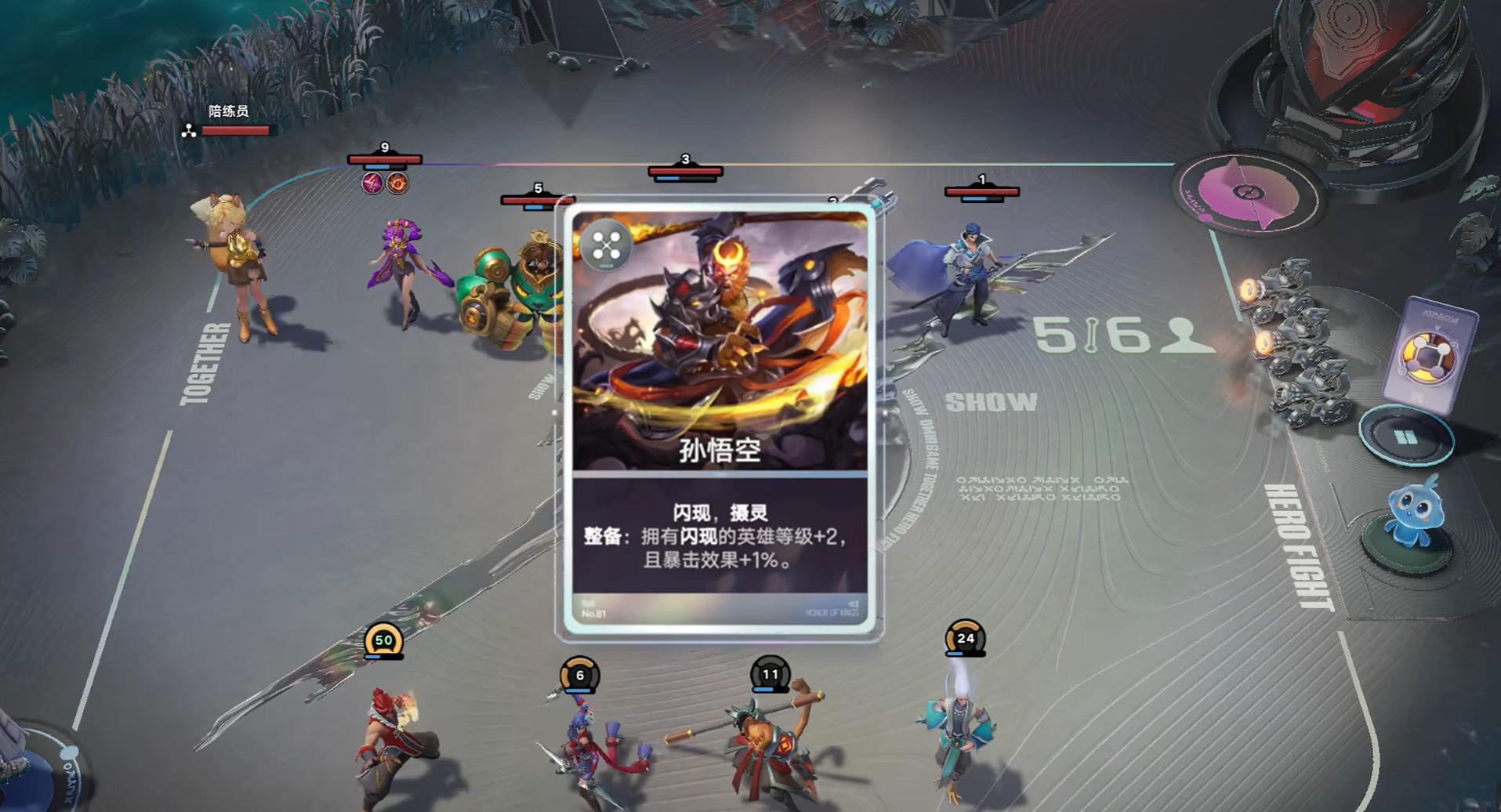 达成四级后,可增加付费刷新频次,集中补足云中君、阿轲等闪现位英雄。此后维持四级等级不动,通过持续合成强化整体星级。布阵时,将猪八戒置于前排承担伤害,所有带闪现的英雄统一部署于后排——战斗开启瞬间,他们将瞬移至敌方后排,直切核心输出单位。装备分配上,猪八戒侧重防御属性,裴擒虎与孙悟空优先选择攻击类装备;天赋选择以全队增益型为主,如团队等级加成、闪现冷却缩减或暴击强化类效果。