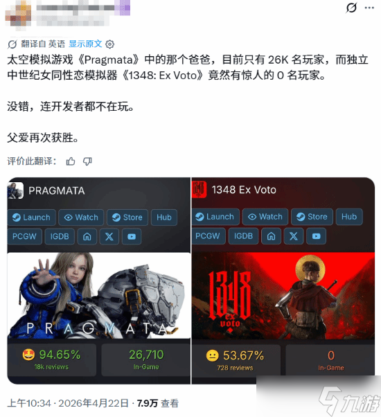 在热烈讨论中,部分玩家将另一款近期备受争议的作品1348:圣誓作为对比案例提及。该作设定于中世纪背景,题材与叙事引发较多分歧,目前在主流数字平台的实时在线人数显示为零。对此,社区中不乏幽默而犀利的评论,例如“连开发者账号都已长期离线”“两者本就不在同一维度上,实难相提并论”。