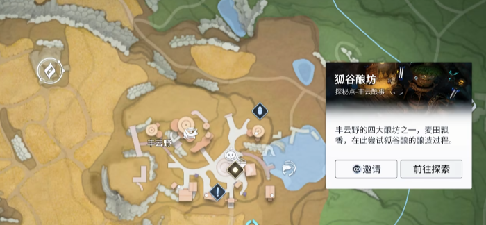 使用所赠鱼饵钓起两条鱼后,潜入湖底,穿过一处洞穴通道,即可抵达一处岩洞地面,祈福石即在此处显现。第四处任务地点为麦田中的【云井酿坊】,此处需集齐四种特定酒酿:【狐谷酿】产自狐谷酿坊、【光阴酿】出自光阴酿坊、【秋湖酿】来自秋湖酿坊,而最终祈福则需返回云井酿坊内,在其旁侧洞窟中与酿酒老板对话启动酿造流程。