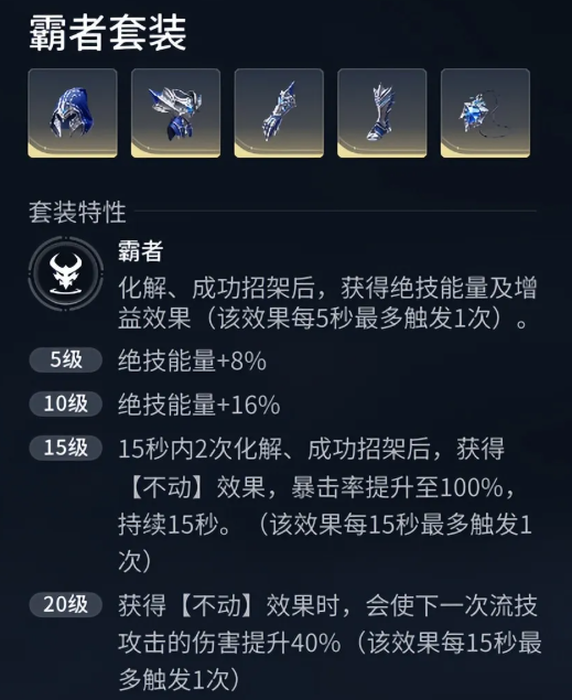 前期核心装备为霸者套:包含霸者重装、抵抗之靴、暗影战斧,该组合可在成功招架后立即返还15%大招能量,并附加3秒20%减伤效果,显著缩短大招循环周期。