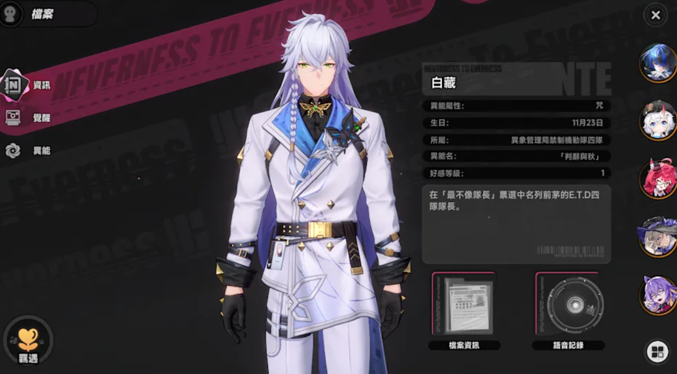 而对那些追求极致伤害数字、斩杀快感的玩家来说,异象管理局E.T.D四队队长白藏就是不可多得的高手。作为咒异能角色,他所具有的攻击具有“噤”、“詈”、“祝”三种标记,使他的战斗带有仪式感。普攻三次命中挂上“祝”,闪避反击挂上“噤”,特殊普攻之后接技能挂上“詈”,不同的标记在开启极轨终结技的领域之后会产生截然不同的爆发效果。最让人拍案叫绝的是他的斩杀机制,在领域内,只要敌人的生命值小于10%,BOSS的生命值小于5%,就可以直接将其杀死。