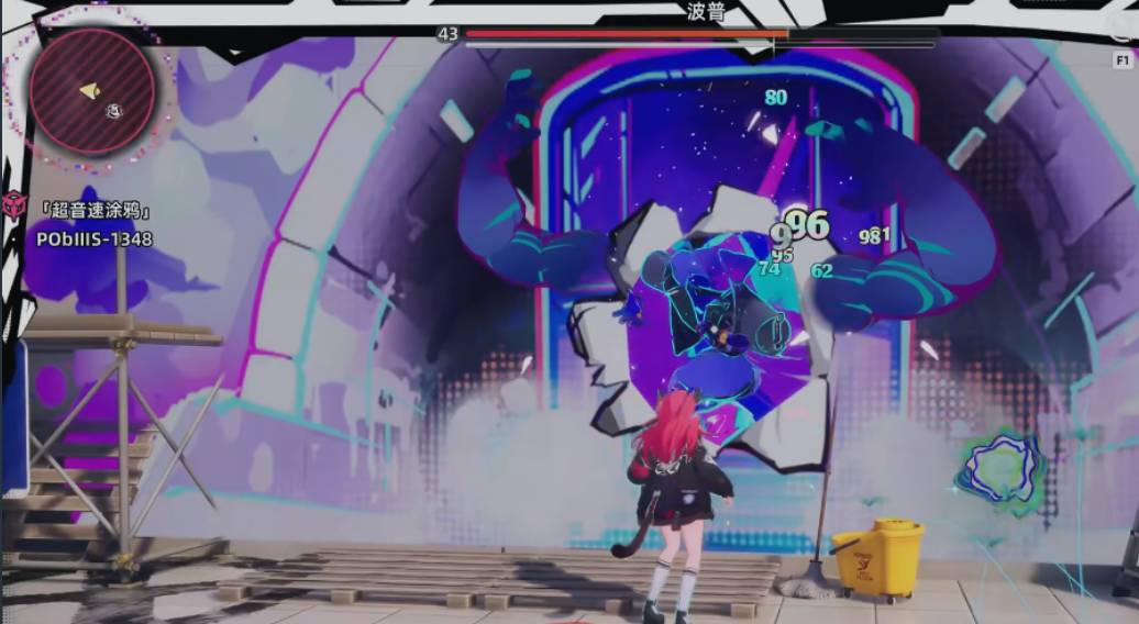 第一阶段中,Boss被限制于涂鸦墙平面内行动,移动轨迹固定,无位移突袭行为。此阶段核心机制为“破刃”,推荐使用角色“薄荷”担任主破防手——其技能具备高速充能、高连段压制及稳定控场特性,可高效触发Boss长时间僵直。僵直期间全队集中输出,即可快速削减其第一阶段血量。操作逻辑简洁,仅需专注观察破刃条进度,对新手玩家友好度高。