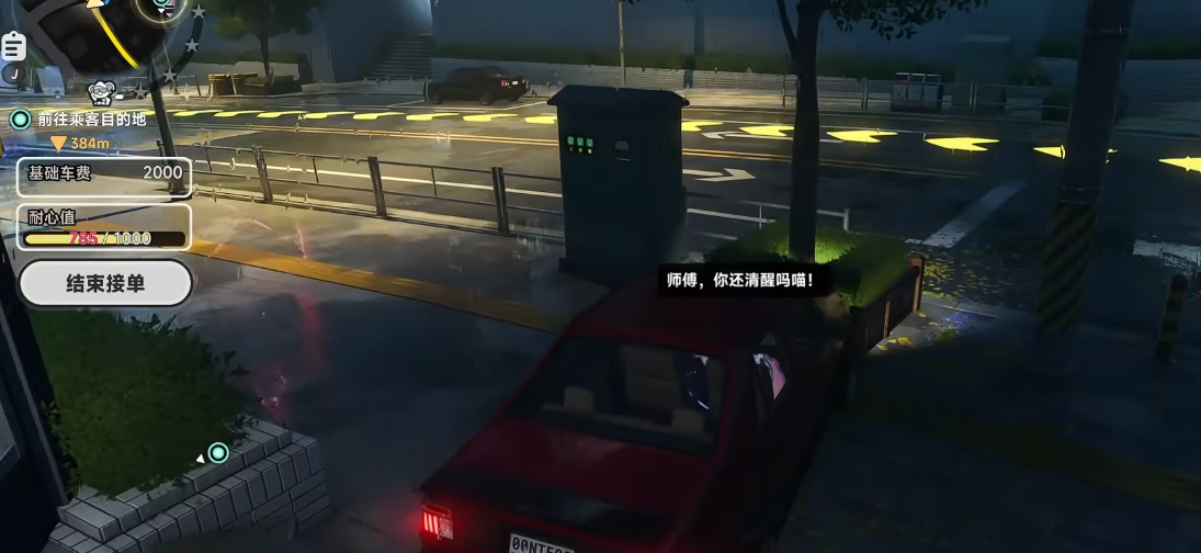 任务起始阶段需与指定NPC交互领取订单,确认接单后即进入驾驶环节。此时务必关注右上角任务面板——它实时同步显示本次订单报酬金额及乘客“耐心值”。该数值随行驶表现动态变化:平稳通行、准时抵达可维持甚至小幅回升;若频繁偏离主路、剐蹭障碍物或长时间停滞,则耐心值持续下滑,归零即判定任务失败。因此,基础驾驶熟练度是顺利完成订单的前提。