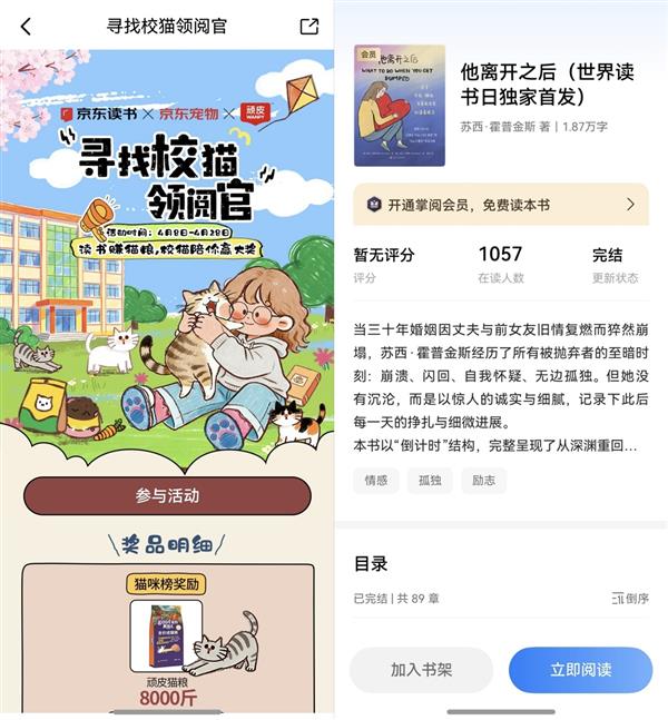 此外,书旗小说的“阅读点亮福利”、京东读书的“寻找校猫领阅官”、晋江小说阅读的专属头像以及掌阅的新书首发,都在用各自的方式,为这份沉浸体验增添惊喜。